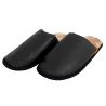 Produzido com material de alta qualidade, trata-se de um modelo na cor preta em corino, fechado à frente e aberto no calcanhar.