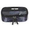 Possui compartimento espaçoso, elásticos organizadores e acabamento resistente, ideal para armazenar lápis, canetas, borrachas e outros materiais com praticidade. O interior forrado protege os itens e facilita a limpeza no dia a dia.