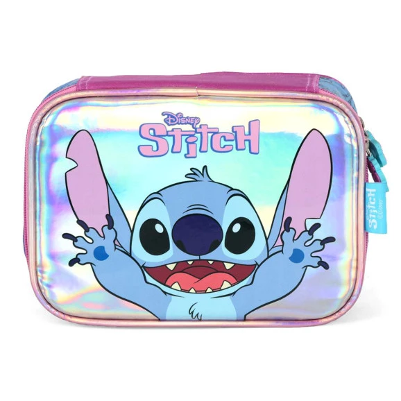 Este estojo escolar Stitch é perfeito para quem ama praticidade com um toque de diversão. Com design exclusivo e acabamento holográfico, ele está disponível em duas versões encantadoras: na cor azul, com o Stitch em um momento carinhoso e tímido, e na versão roxa, com o Stitch alegre e cheio de energia.