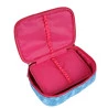 O interior forrado em tom rosa vibrante proporciona um contraste divertido e facilita a visualização dos itens.