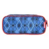 Possui três compartimentos com fechamento em zíper, permitindo separar lápis, canetas, borrachas e outros itens de papelaria de forma funcional e segura.