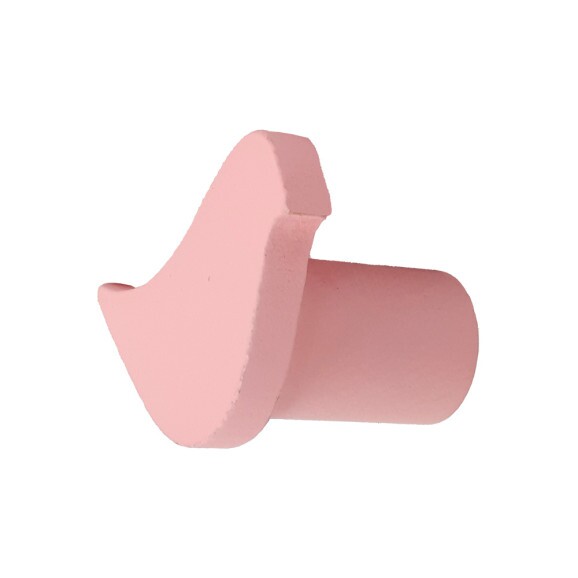 O gancho é composto de duas peças principais. A peça traseira, cilíndrica, comporta um parafuso com bucha (fornecido com o produto) que você irá utilizar para afixar na parede. A peça frontal, com formato de passarinho, cumpre a função decorativa e de gancho.