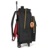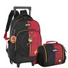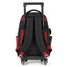 A mochila conta com rodinhas resistentes, alça retrátil e alças acolchoadas para uso nas costas, oferecendo versatilidade e conforto. Tem amplo espaço interno, bolsos laterais e compartimento frontal para facilitar a organização.
