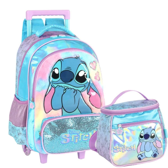 O Kit Mochila com Rodinhas + Lancheira Térmica Disney Stitch é perfeito para acompanhar a rotina escolar com muito estilo e encanto. Com cores vibrantes, brilho holográfico e acabamento de qualidade, ele é ideal para crianças e fãs do personagem mais travesso e carismático da Disney.